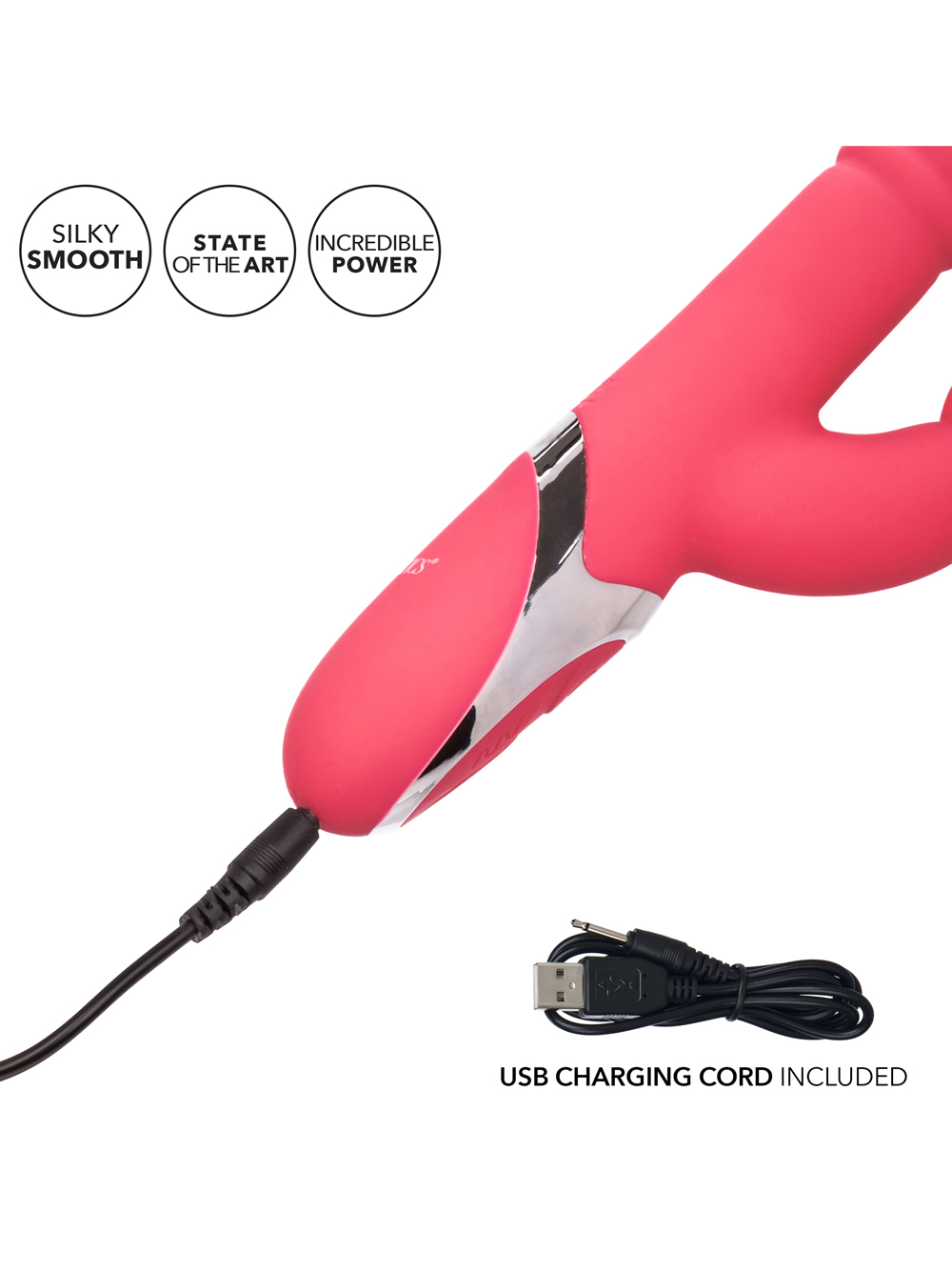 Flickering bunny ears are just the beginning of the enchanting tricks this vibrating twice-as-nice-style thruster has in store for you! Exciter does it all: the bunny-shaped external stimulator provides focus if you want it (cuddle up to its protruding nose) or fluttering, vibrating ears for more encompassing sensation. The external bunny offers you 12 independent vibrating levels, but you can also choose your favorite of four separate strong thrusting modes, or advance through them all–thrusting action continues even when pressure is applied. With a bulbous tip for G-spot (or P spot) stimulation, plus ribs located at the center of the shaft that assist in the thrusting motion, but also provide an extra level of stimulation during penetration, this toy is ready to stimulate you every which way!