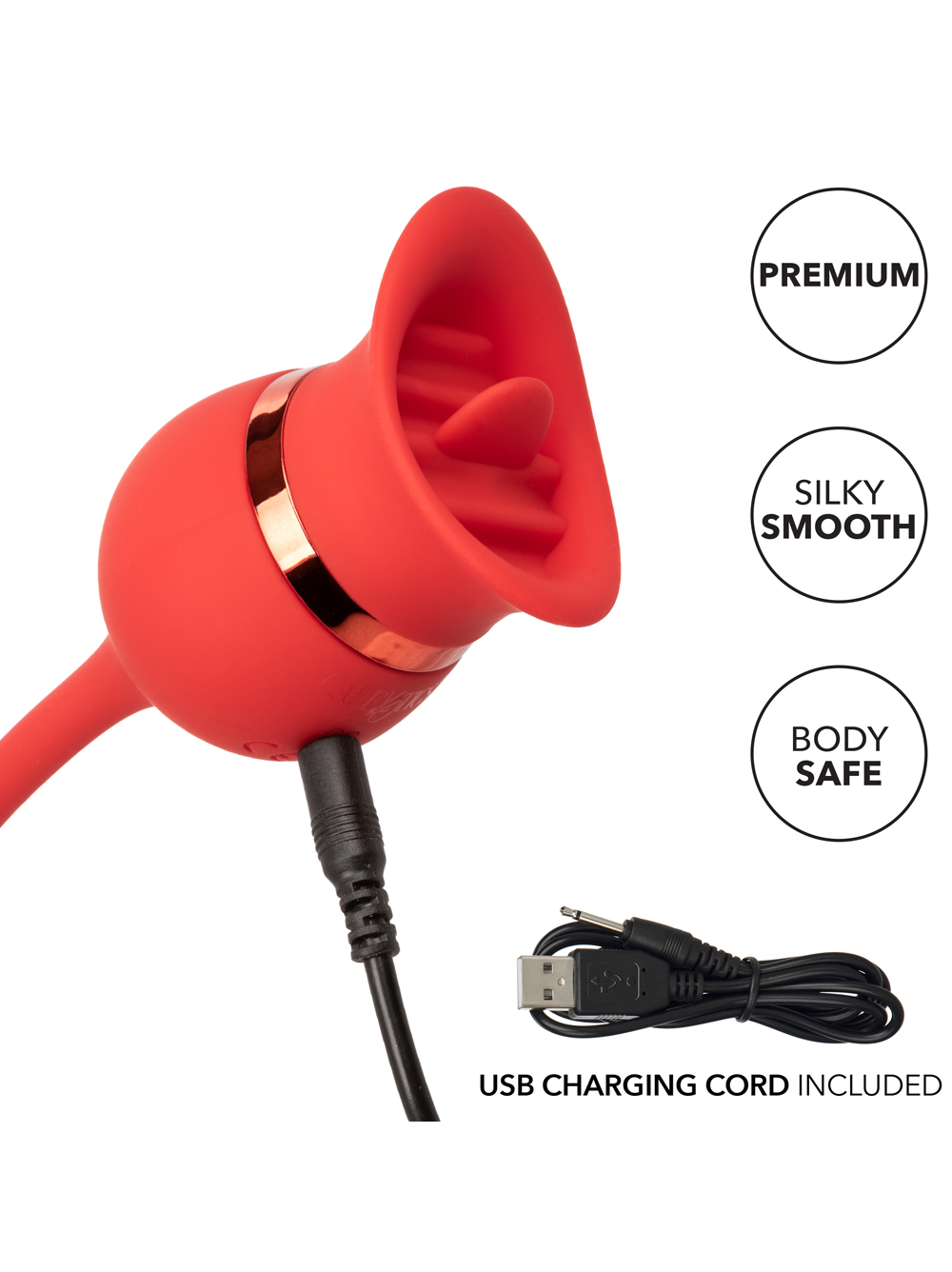 While the flickering teaser does what it does best, the powerful bullet glides across your body to deliver knee-shaking vibrations. The teaser and bullet can be used independently or simultaneously for next level stimulation. When pressed against your body, the fluttering tongue teaser delivers pinpoint pleasure while the scooped outer lips provide full coverage on your most sensitive areas. The soft silicone and flexible contoured body lets you bestow pleasure upon all your sweet spots.