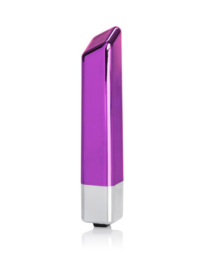 Stylish, angular and futuristic, this compact vibrator sports a color-saturated two-tone metallic design with an angled tip capable of offering pin-point stimulation, if that’s how you like it–or shift the angle if you like your stimulation more diffused. Great for beginner vibe users, Kroma’s three easy-to-use speeds are controlled by a simple one-touch button. Kroma is splashproof, comes with a 90-day warranty, and runs on one AAA battery (not included).