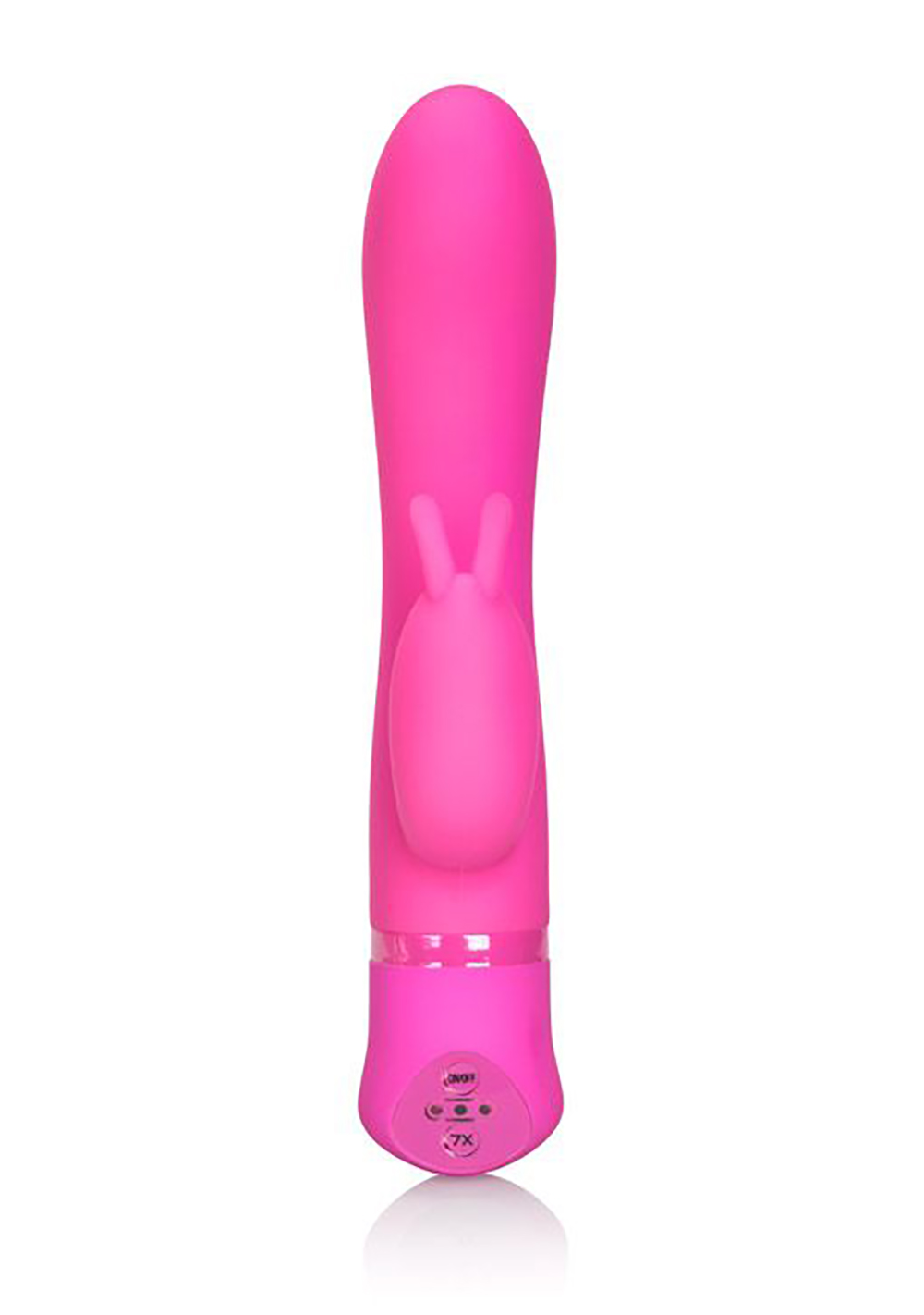 Extend your orgasmic delight with the power-packed Spellbound Bunny vibe. The exotic sensually contoured combo stimulator is designed for simultaneous vaginal and clitoral pleasure and boasts 7 intense vibration, pulsation and escalation functions for ultimate ecstasy. The versatile massager is made from soft and smooth, phthalate free premium silicone, and measures 4.5” x 1”/11.5 cm x 2.5 cm. The sleek shaft is sensually contoured for ultimate comfort and extended reach and features an angled, rounded tip and a bunny shaped clitoral teaser. Dual motors power up the pleasurable vibrations that deliver unforgettable sensations to your sweet spots and erogenous zones. The waterproof vibe is great for spontaneous intimate exploration in the shower, bath or hot tub. Indulge in intimate self-gratification pleasure, or share the seduction sensations with your lover. Select your preferred pleasure pace via the push button controls located at the base. Before and after play, clean the massager with a toy cleaner spray or mild soapy water.