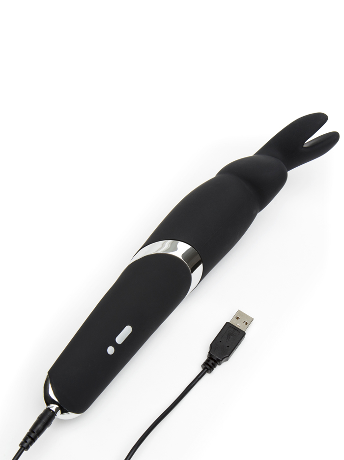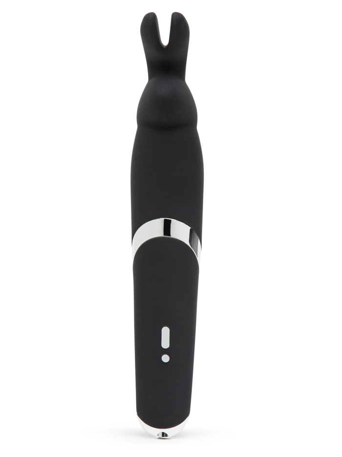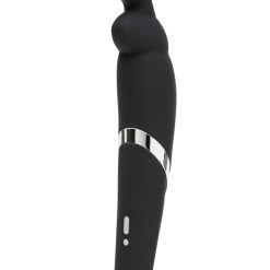 Bunny fans, rejoice! This powerful silicone wand-shaped vibrator is long and slightly contoured, with a stylized rabbit head and ears at the top. It’s more than a cute profile–the shape is a real bonus that offers reach, plus the tapered handle allows you to comfortably hold the vibe while experiencing the many ways this wand can stimulate the body. Insert the ears and allow the “nose” to nestle up to you; flip it around and use the flexible ears to encase the clitoris for surround-sound stimulation. There are endless ways to enjoy this versatile rabbit –it’s ideally shaped for either solo or partnered use, and each of its range of functions offers a different feel. Ten powerful vibration functions (one solid vibration and nine varying escalation and pulsing modes); each has three intensity levels, and that adds up to 30 speeds and patterns in its happy ears! This bunny isn’t afraid to get wet, and can be enjoyed in the shower or bath. Take it on the road by engaging the travel lock–just press down on both buttons for three seconds to lock or unlock. USB rechargeable; 150 minutes of charge time yields two hours of use. We recommended using water-based lubricant with this silicone toy.