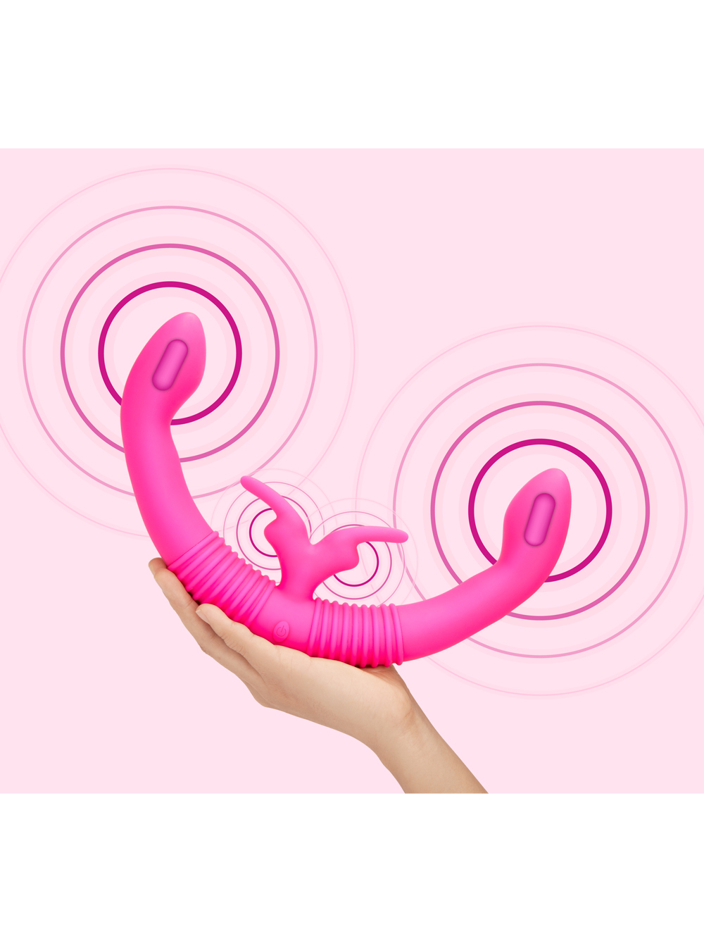 Together can also be used as a solo vibe. When used on its own, the outer arm gives you greater control of the internal side. The real-time feedback of the Echo feature will mimic your actions in the handle—just squeeze the outer end to feel deeper and more intense sensations in the inserted end. Together can be used vaginally or anally, and the bulbous tips are great for G-spot or prostate stimulation. The anatomical combinations are endless! The dual rabbits on the base of the toy were designed for a wide array of body types, which can arouse areas like the perineum, vulva and clitoris.