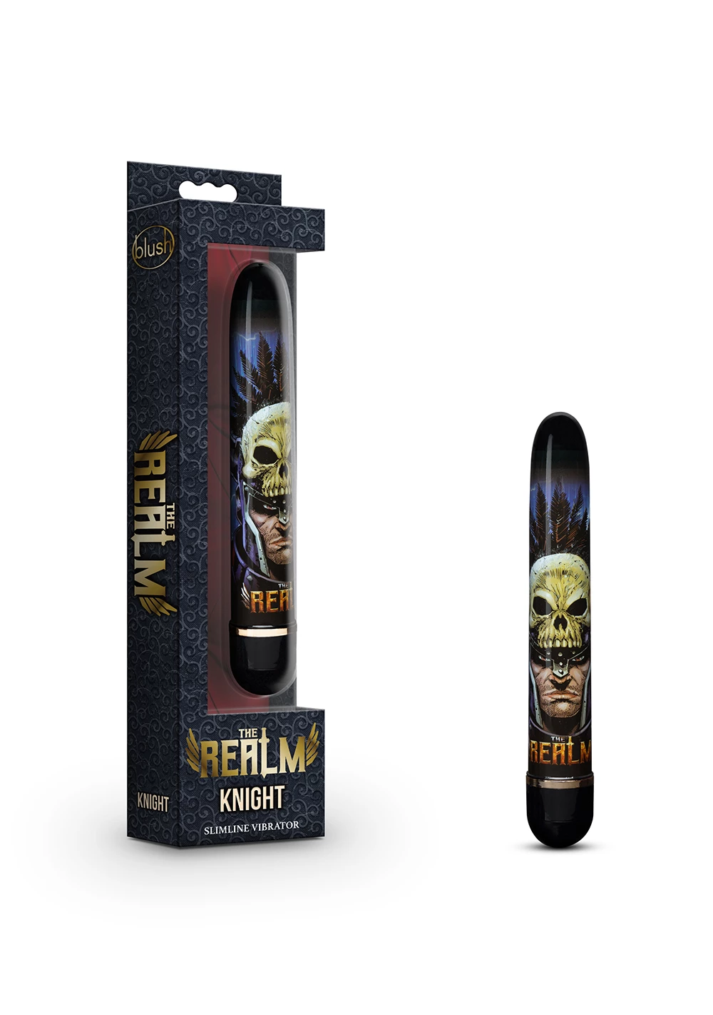 It’s not just myth… with The Realm your epic fantasies come to life! The Realm Knight is always ready to battle for your orgasms. Wielding adjustable, multi-speed vibrations, its ultra-smooth body is safely embedded with an RPG-inspired design. The Realm Knight is perfect for solo or couples play, and for both internal and external use. Made of non-porous ABS plastic, The Realm Knight is body safe, phthalate-free, and easy to clean. Requires 2 AA batteries (not included).