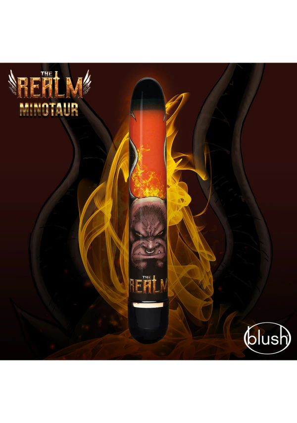 It’s not just myth… with The Realm your epic fantasies come to life! The Realm Minotaur will draw you into a maze of desire. Dare to do battle with the Minotaur’s adjustable, multi-speed vibrations. The Realm Minotaur is perfect for solo or couples play, and for both internal and external use. Made of non-porous ABS plastic, The Realm Minotaur is body safe, phthalate-free, and easy to clean. Requires 2 AA batteries (not included).