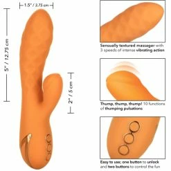 The Newport Beach Babe has both an internal and an external motor which can be independently controlled, giving you total control over your pleasure. You can even mix and match the various modes on either motor! Find a setting you like? The memory chip lets you quickly return to your favorite so you can get right back to business! This pleasure toy has three buttons to press: one button moves the internal piece, the second button controls the external bit, and the third button activates the Newport Beach Babe’s travel lock! The curved internal piece will vibrate you back and forth to orgasm with three levels of tantalizing vibrational patterns, stimulating the G-spot in a whole new way! The textured external stimulator offers a “thumping” sensation which is good for those who prefer more pronounced external stimulation. With ten different levels of vibration, escalation, AND pulsation that are sure to rock all your sweet spots, who wouldn’t want to spend a long day at the beach?