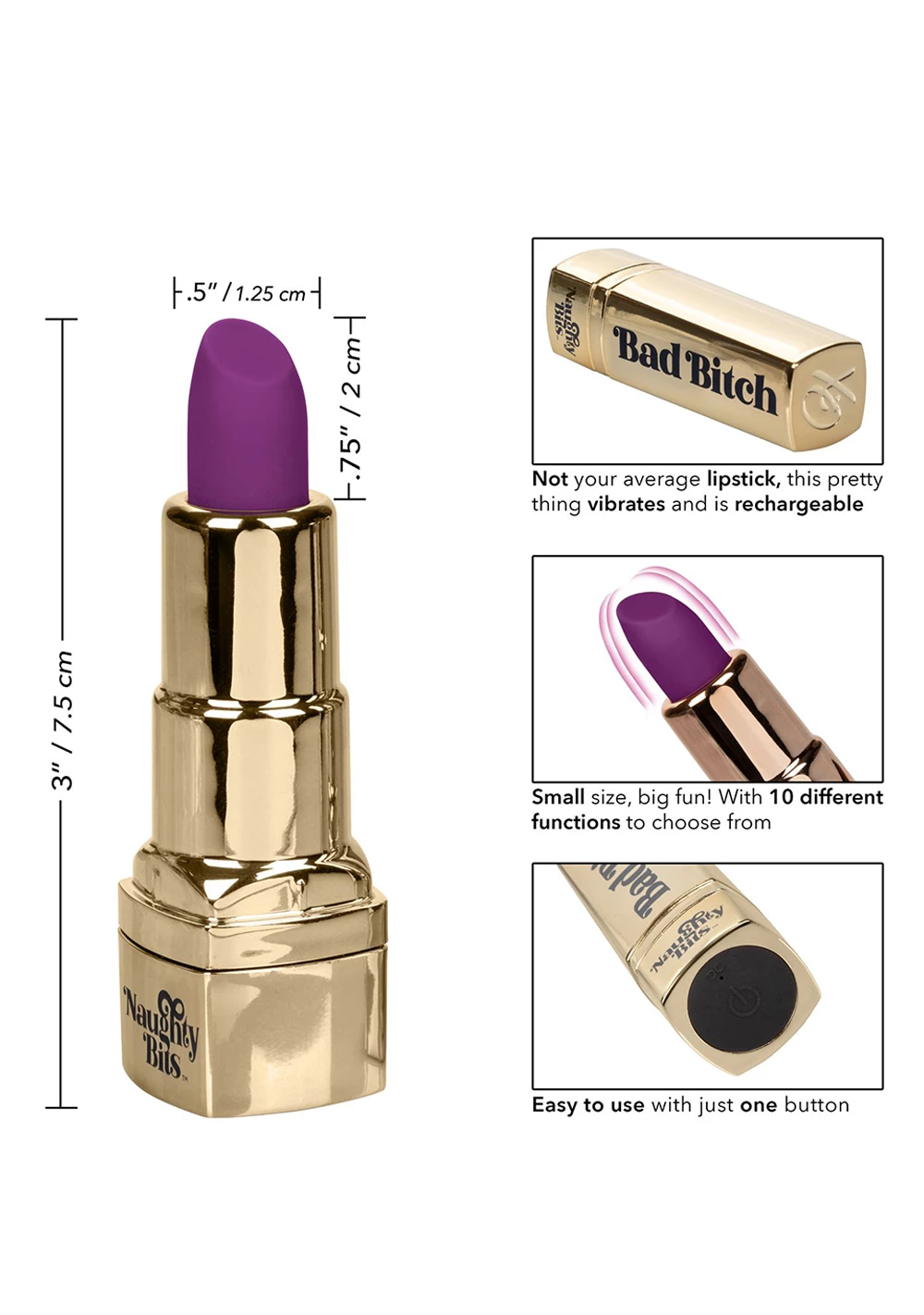 The Naughty Bits™ collection is made to stand out in any nightstand with eye-catching designs and orgasmic features. The ultra plush silicone and sleek gold details of this gorgeous mini massager will make even the most stylish lover smiling before and after.