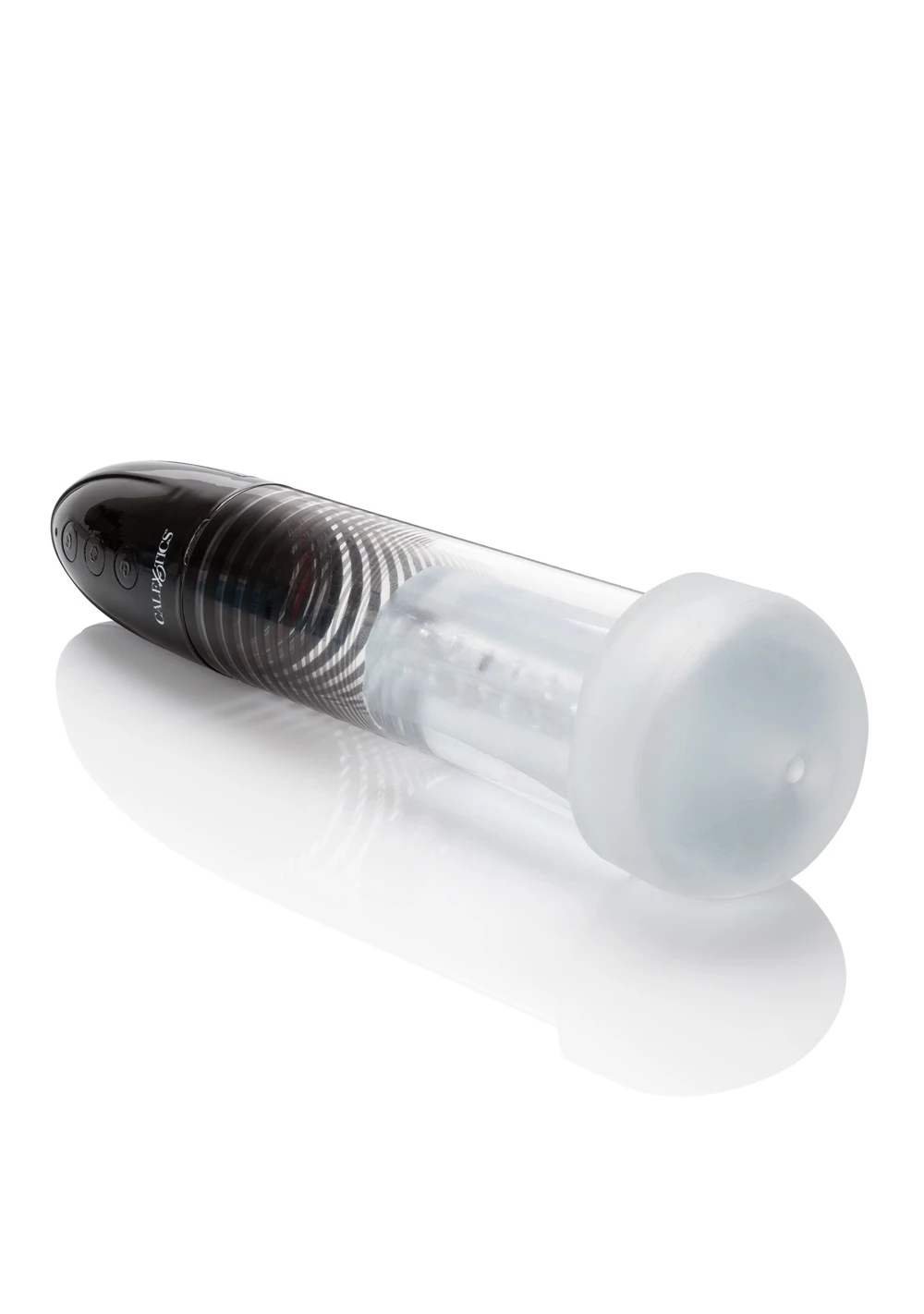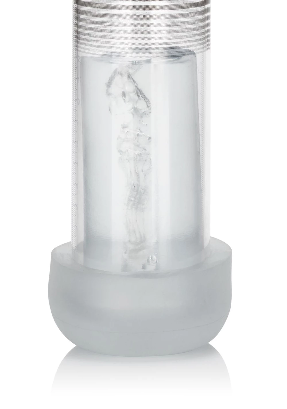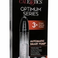 Maximize your pleasure tool with the Optimum Series Automatic Smart Pump, a sleek, durable penis pump sex toy for men, made for superior suction and performance enhancement. Increase endurance, improve stamina and amplify your rod with 3 unique enhancement exercise modes. The sleek smart pump has easy-touch controls and a quick air release button for customizable pumping. While the thick open-end sleeve and tight, nubbed chamber give you sinful stroking pleasure with or without the pump. Never settle for less when it comes to the size of your pleasure with the Optimum™ Series. The cylindrical pump and thick, durable sleeve are designed to create the perfect seal and powerful suction at the touch of a button. Once you’ve reached your peak pump, use the quick air release to decrease suction or release seal. When used regularly, this powerful pumper can increase stamina, enhance overall size and amplify sensation. Recharge the premium pump in 90 minutes with the provided USB charging cable to enjoy 60 minutes of high-speed stimulation or 80 minutes of low speed suction. To track progress, use the incremental measurement marks on the cylinder shaft. The premium sleeve fits into most standard pumps, but can be used independently for a passionate stroking experience. The premium TPR is a body safe, unscented and phthalate free to keep you most sensitive spots, happy and healthy. Enjoy easy clean up with this maintenance free stimulator sleeve, simply wash with soap and warm water before and after each use. Use ample lubricant for easy insertion.