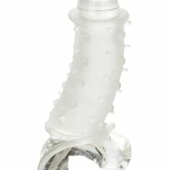 The Sensation Enhancer is a snug, open-end extension sleeve with a textured shaft. The enhancer wraps securely around your penis to increase girth and length. The ribbed inner chamber and built-in strap provide additional stimulation and support for the wearer. The contoured exterior is sure to thrill those being penetrated. The soft, stretchy elastomer is unscented, phthalate free and easy to maintain. Simply wash with soap and warm water before and after each use.