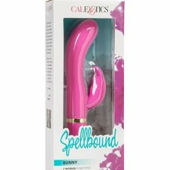 Extend your orgasmic delight with the power-packed Spellbound Bunny vibe. The exotic sensually contoured combo stimulator is designed for simultaneous vaginal and clitoral pleasure and boasts 7 intense vibration, pulsation and escalation functions for ultimate ecstasy. The versatile massager is made from soft and smooth, phthalate free premium silicone, and measures 4.5” x 1”/11.5 cm x 2.5 cm. The sleek shaft is sensually contoured for ultimate comfort and extended reach and features an angled, rounded tip and a bunny shaped clitoral teaser. Dual motors power up the pleasurable vibrations that deliver unforgettable sensations to your sweet spots and erogenous zones. The waterproof vibe is great for spontaneous intimate exploration in the shower, bath or hot tub. Indulge in intimate self-gratification pleasure, or share the seduction sensations with your lover. Select your preferred pleasure pace via the push button controls located at the base. Before and after play, clean the massager with a toy cleaner spray or mild soapy water.