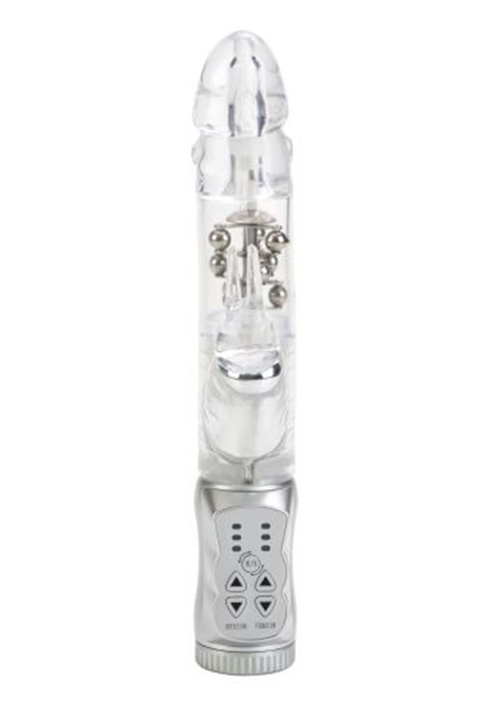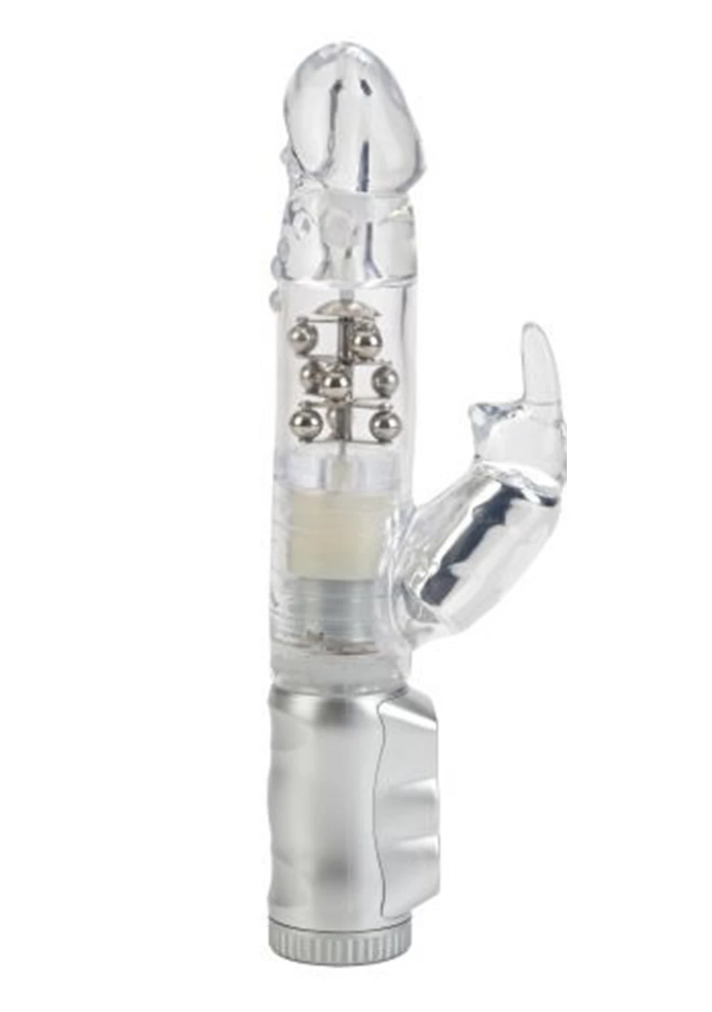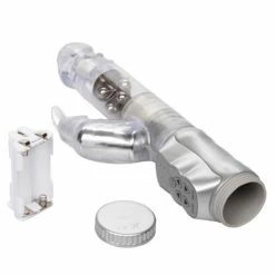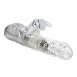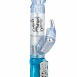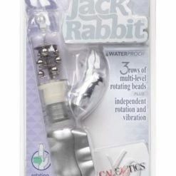 The Waterproof Jack Rabbit is the perfect companion for intensely pleasurable intimate fun. The multi-speed, reversible rotation vibe is ideal for experienced explorers and daring first-time users looking for a memorable orgasmic experience. Made from smooth, pliable phthalate-free PVC, the discreet massager measures 4.75″ (insertable) x 1.5″. The vibe has a transparent jelly shaft, with floating metal beads rotation, and a super-soft, curvy bunny-shaped clitoral teaser, with flickering ears for intense stimulation. To maximize pleasure, the easy-to-use massager boasts 3 vibration speeds and 3 speeds of reversible shaft rotation. To intensify the sensations, it is recommended that you use a quality lube. The popular rabbit style makes solo time in the bath or shower much more fun! Runs on 3 AA batteries and has an EZ load battery case. Always remember to clean the vibe before and after use. Spray with a toy cleaner spray or wash in warm, soapy water.