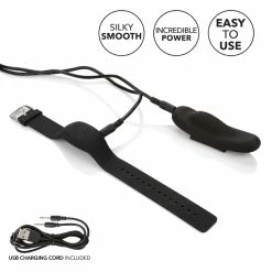 Got panties, got pleasure! This slender panty vibrator features Lock-N-Play™ design, two magnetic wings that clip onto your panties to secure the waterproof vibe so it stays in place during use, plus a ridged, raised shape for more stimulation and friction. With a discreet wristband remote control that leaves both hands free for play; designed with an adjustable buckled closure so you (or your partner) can wear it like a watch, it makes it easy to play in public (it offers a 32-foot radius range for play), or just appreciate the experience of keeping track of the remote while playing at home. With two-button controls and 12 functions of vibration, escalation and pulsation, and you can use it with or without the remote. Featuring a memory chip that resumes on the last function you used. USB rechargeable with charging cord included.