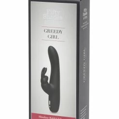 Featuring a powerful motor that offers 15 vibration modes (three intensity levels and nine patterns in the shaft, plus three speeds in the ears), the Greedy Girl Slimline Rabbit is a great choice for beginners looking to explore or advanced users who’ve already been formally introduced to the pleasures of this classic silhouette. To turn it on, press the control button down for two seconds. Continue pressing to move through the speeds and patterns. To turn off, hold the button down again for two additional seconds. Includes a travel lock for carefree travels–just double-click the button to activate or deactivate—and it comes with a satin storage bag that helps keep your new rabbit friend discreet and clean on or off the road. USB-rechargeable; a two-hour charge yields an hour of play. Part of the official Fifty Shades of Grey Pleasure Collection approved by author E L James.