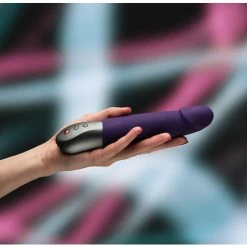 Slim and submersible this waterproof thruster pleasures through motion rather than through vibration. Featuring a smooth, velvety silicone shaft with a penis-shaped tip that sports a slight curve and a corona-like ridge that can provide g-spot stimulation. Try it hands-free–it thrusts and pulses on its own (you may want to set a pillow for it to thrust back against, which allows you to focus the depth of stimulation you want), or add clitoral sensations with a vibrator, cunnilingus, or your own hand. It’s slimmer and more lightweight than other thrusters. With 7 speeds and 3 rhythm settings, you can get specific about the kind of thrusting you want! Press FUN button to begin; just hit the – button to lower or + to increase its intensity and rhythm settings. Easy to turn on/off; press the FUN button for half a second to turn it on, then click FUN again to turn the toy off. Featuring a simple-to-use travel lock (to lock, press – and – simultaneously; to unlock, do the same. In both cases the buttons will blink and the unit will buzz briefly). This thruster is charged via USB; the initial charge takes 6-8 hours, yielding 45 minutes of continuing play on the highest setting. Use with water-based lubricant; clean with mild soap and water.