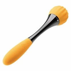 Two powerful motors in one stylish double-ended vibe! Treat yourself to this ‘two-faced’ robust machine with a textured round wand head on one end – and a long, thin oval head on the other. Let the ball roll and rumble wherever feels good and use the slender oar for more targeted vibrations. Motors are controlled separately and feature 10 speeds and vibrations each, with an easy-to-use 2-button control that lights up for visibility, even underwater as this toy is completely submersible. Rechargeable, latex-free, and easy to clean. 5 year warranty.