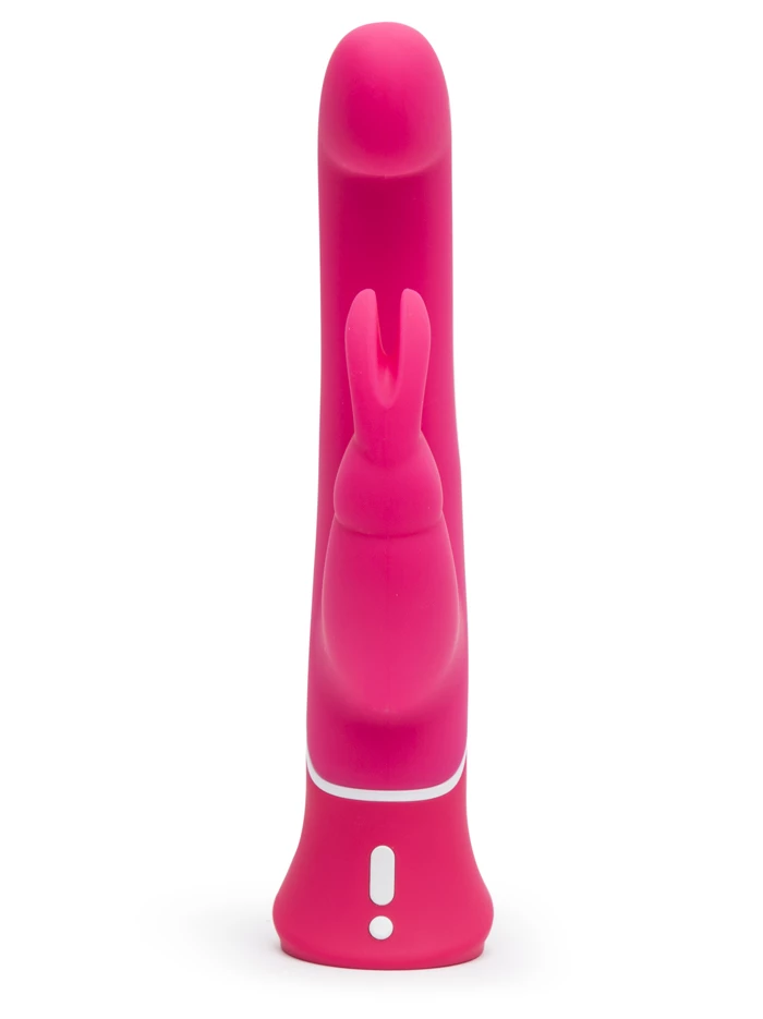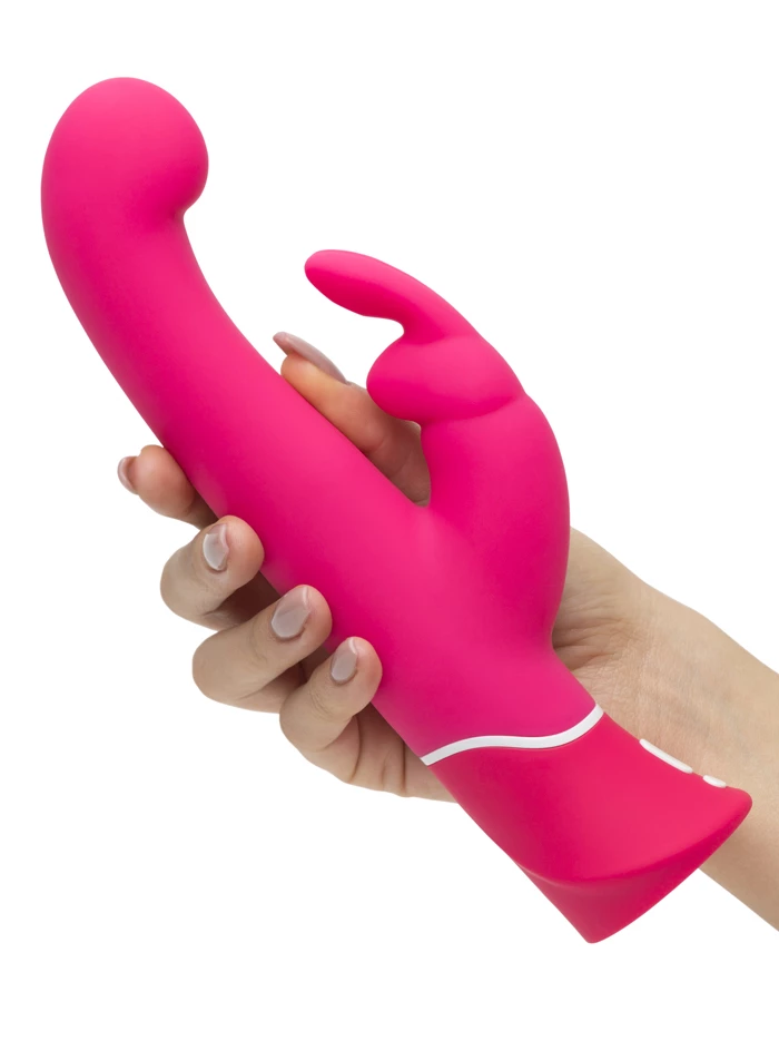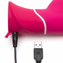 Meet a bunny that makes your pleasure its #1 priority! This waterproof twice-as-nice toy, designed with a pronounced curve at the end of the shaft for targeted g-spot stimulation, is sleek and smooth, featuring external stimulation from a rabbit with a protruding nose and thick vibrating ears. The motor in the external stimulator offers three speeds, while shaft has three speeds and nine patterns and charges via USB. Use with water-based lubricant; clean with mild soap and water.