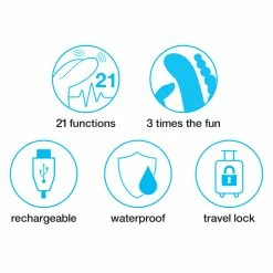 And this very smart bunny is waterproof and comes with a travel lock– to activate, hold down both buttons for two seconds. A double buzz means the travel lock is on. To turn it off, press and hold down both buttons for two seconds, or start charging the vibrator. Waterproof; we recommend you use water-based lubricant with this silicone toy. USB rechargeable; 2.5 hours of charge time yields 2 hours of use. A green light at the base means Triple is fully charged.