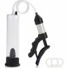 This hand-held pump is great for traveling—we recommend this pump for more experienced users and DO NOT recommend this pump for use with smaller cylinders, such as the Vulva Pump Cup and the Nipple and Clit Cylinder because it PULLS AIR FAST. The LED display uses MBARS (Millibars) for gauging pressure. Features a pressure release button on the display. Comes with two feet of medical grade, soft, pliable tubing and a male connector. Auto shut-off feature. (Once fully depressurized the unit will shut off after 5 seconds.) Battery operated (requires 4 AAA batteries).