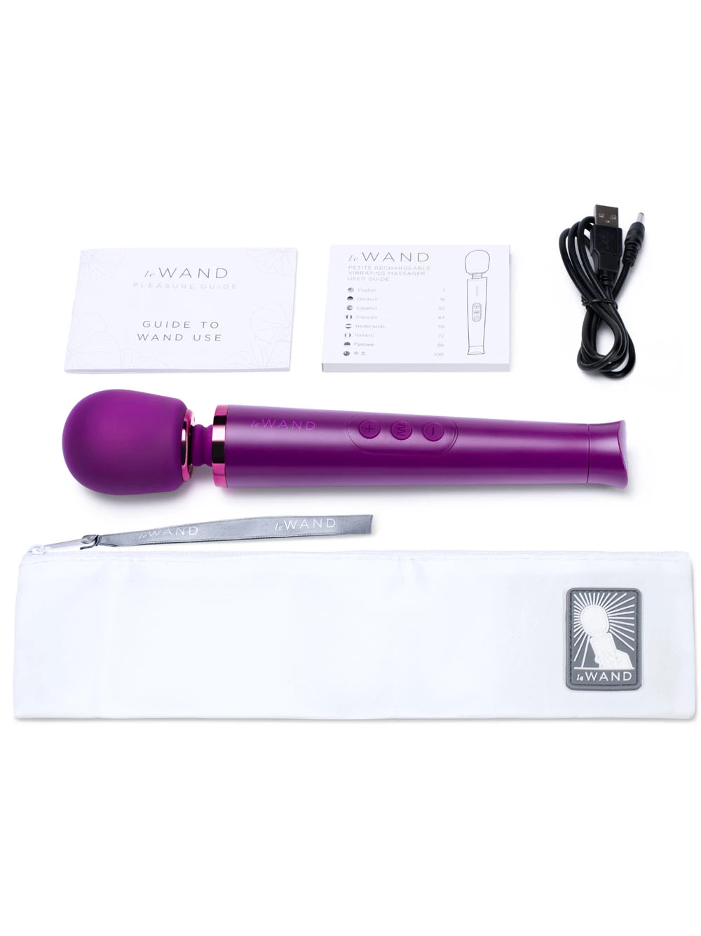Ideal for beginners, the cordless Le Wand Petite’s lightweight and flexible design is great for stimulating all of your erogenous zones, including your neck, thighs, back, or wherever your body is holding stress! Perfect for solo or couples play, its rechargeable battery and travel lock make it the perfect companion wherever your fantasies may lead. USB rechargeable; a two-hour charge yields one hour of use. Play confidently knowing that all Le Wand products come with a 1-year warranty and a lifetime guarantee. We recommend a water-based lubricant with this massager. Be sure to clean before and after every use. The Le Wand Petite is splashproof and safe to use in the shower. To avoid electric shock and damage to the toy, check if the charging port is dry before charging.