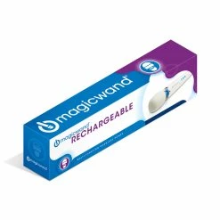 Charging unit included; plug-and-play option for those times when you’re near an outlet. (Does not charge during plug-and-play.) Runs for three hours on a full charge; for your safety and to preserve electronics and battery life, the wand shuts off automatically after twenty minutes of continuous use. The manufacturer recommends a cooling-off period at that point, but the wand will immediately function after the auto-shut-off if you wish to resume using it right away. The Magic Wand Rechargeable is not waterproof nor splash-proof.