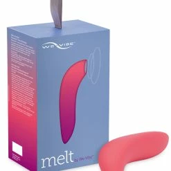 You’ll melt for this waterproof stimulator with its silky-smooth feel and slim, curved design–shaped to fit in-between bodies–that makes powerful stimulation during partner play comfortable and accessible. It’s great for external solo play too, with Pleasure Air technology and 12 vibration modes! The opening surrounds the clitoris; Melt’s patented technology uses gentle changes in air pressure to massage and indirectly stimulate the clitoris. Use Melt with We-Vibe’s We-Connect app for remote-control or long-distance connection.