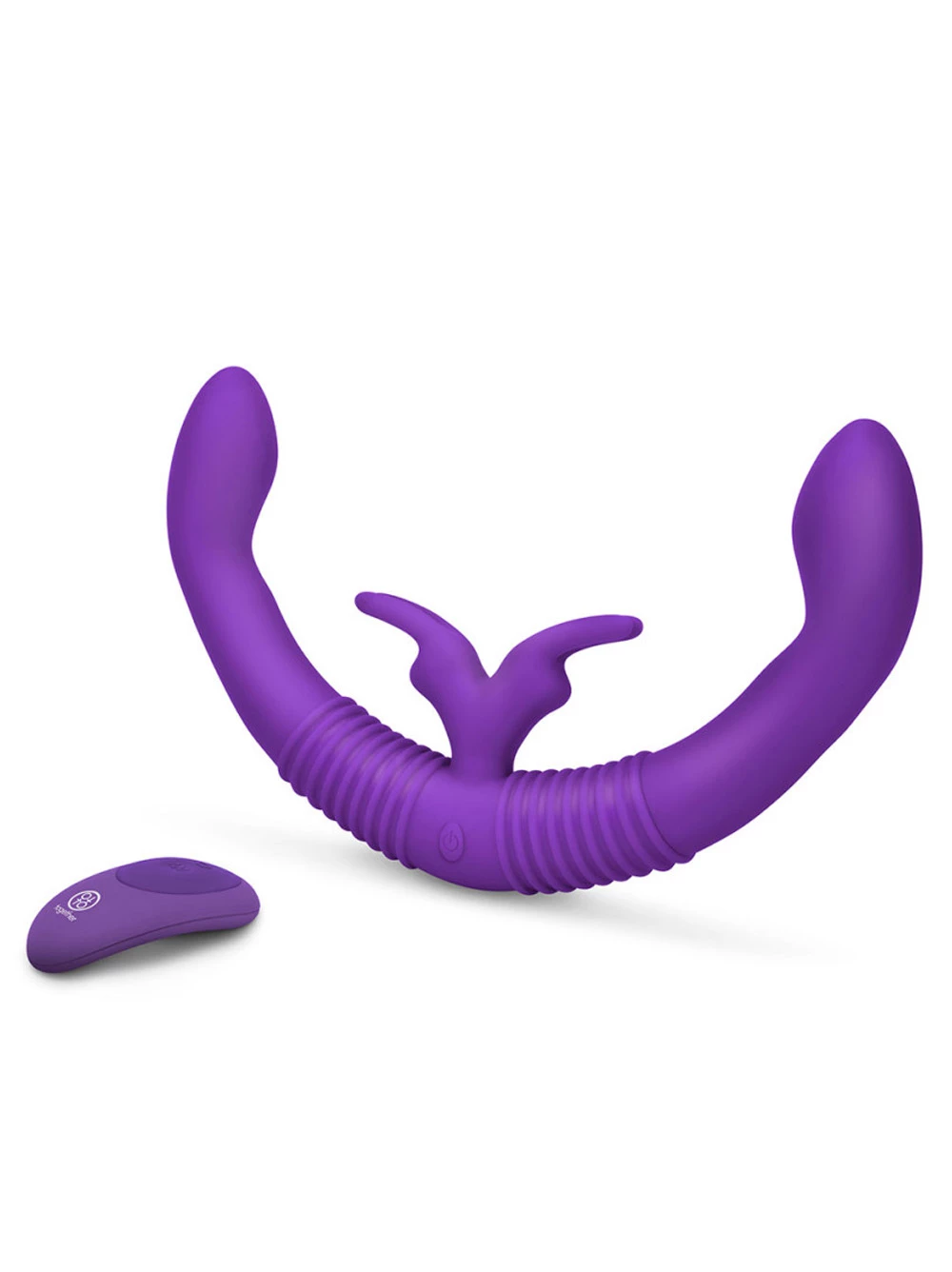 Together™’s innovative approach to shared passion is designed to allow both partners to face each other, promoting closeness during intimacy. Great for face-to-face intercourse but also great when partners move into different positions. In addition to dual functionality for both partners, the design offers the perfect amount of tension for multiple positions, ideal for hitting both partners’ g-spots and/or p-spots since the outer arms can be used vaginally and/or anally!