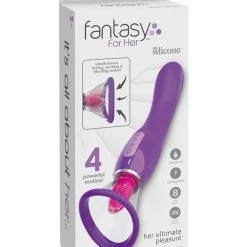 Her Ultimate Pleasure has a lot going on, all in the service of your orgasm! Combining suction, a tongue-like flicker, and a vibrator all in one easy-to-use design. It’s a major step forward in simulated oral sex toys, with a tongue that’ll never get tired! Almost every feature of the Her Ultimate Pleasure can be used simultaneously or independently, which lets you completely customize your experience. With an overall length of 10”, Her Ultimate Pleasure features a smooth, ergonomically curved, silicone handle that houses its own powerful motor–and that doubles as a vibrator! Use it for pinpoint external pleasure or for internal G-spot stimulation.
