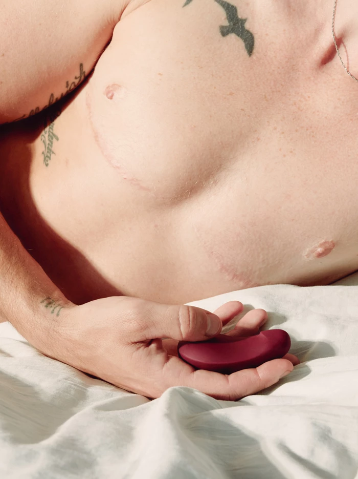 Pom is a flexible, powerful ergonomic vibrator that fits comfortably in the palm of your hand, a soft silicone bean shape that conforms to your body during use. Its contoured form tapers slightly towards the tip as it bends and curves to cuddle against any part of the body you want to stimulate–it’s designed to be versatile, flexible, and feel like an extension of your hand, with no internal plastic to make it rigid. Enjoy how squeezable it is as you use it for broad or targeted pleasure; besides the main surface, explore the different sensations you get using the sides or the peak design at Pom’s tip. Find your groove with its five intensity levels plus five preset patterns.