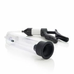 With a total cylinder length of 20 cm (7.9″) and an inner diameter of 6 cm (2.35″), this high-quality pump gives you ample possibilities to grow in both directions! The total length of the hose is 25 cm (10″) and the insertion sleeve is made of smooth Silicone. Surprise yourself on how big you can get! This variant comes with a finger grip pump, a cylinder with gauge and a quick release valve for your comfort.