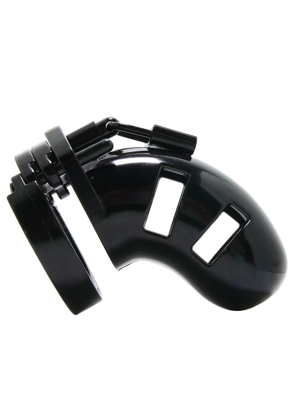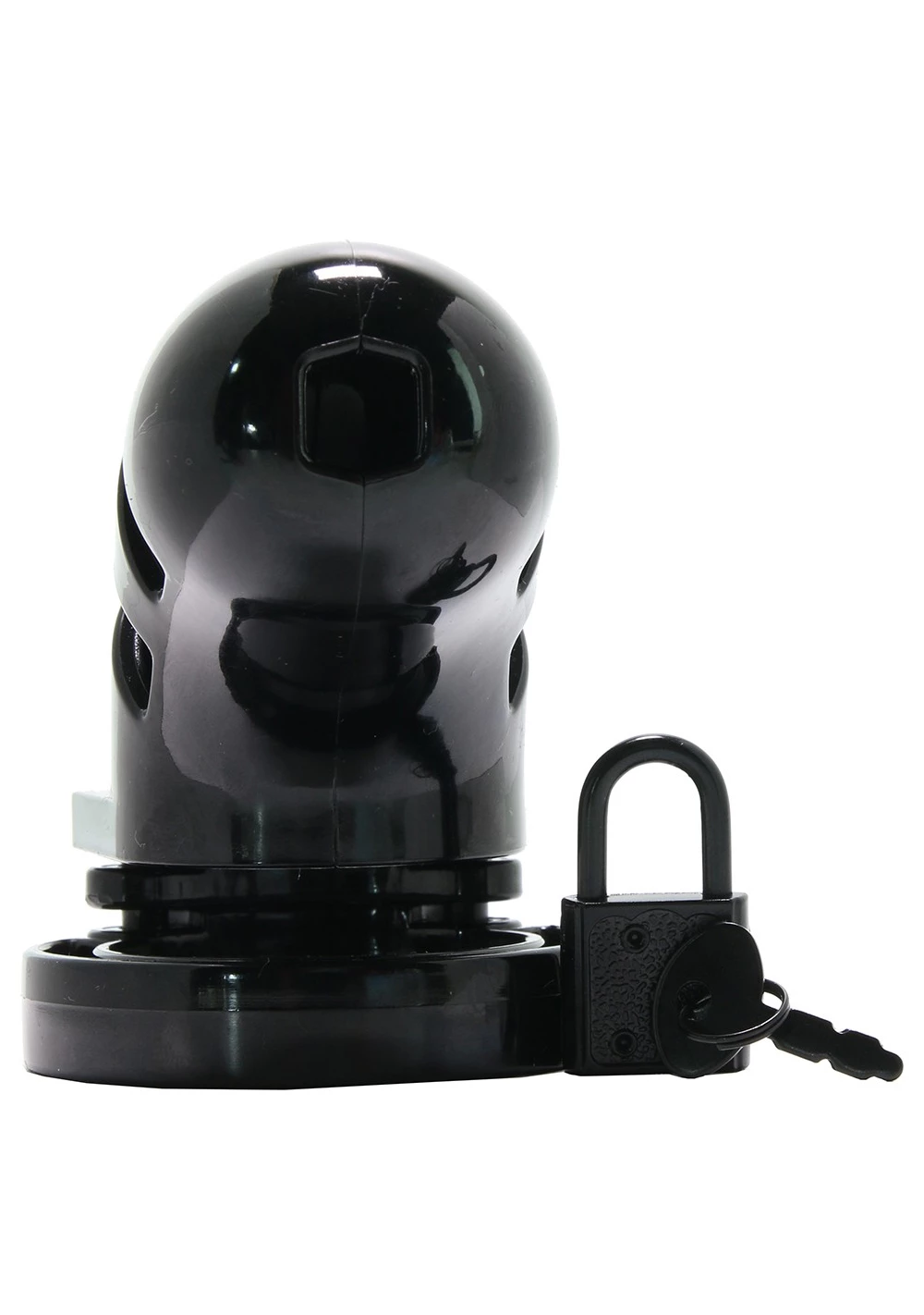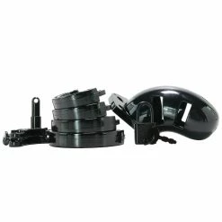Take your BDSM play to the next level! To control or be controlled? That is the question! The Penis Cage Chastity Cages are manufactured from high-grade polycarbonate, a very light, durable, and hypoallergenic material. The cage consists of three parts that fit perfectly together. The two guidance pins connect the top parts and the oval taper pin connects the rings with the cage. A variety of rings in different sizes and distance pieces will allow you to create the perfect size! The rings have a comfortable fit and are absolutely safe. A metal lock or tie-wrap lock can easily close the cage. The included tie-wrap locks ensure that they will not trigger the alarm of metal detectors at parties, festivals, or even airports! As hygiene is very important while wearing a cage, the superior Penis Cage series is equipped with various vents and a urination opening. The cage makes it impossible to get an erection but it will be, after liberation, super intense, just like the freeing orgasm to follow! The Penis Cage Chastity Cage gives the keyholder optimal power over sexual gratification!