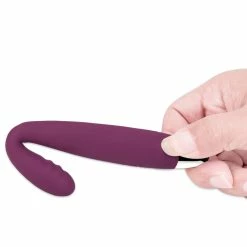 This long and slender vibrator has great reach, and its very flexible angled tip–it can bend 30 degrees!–can easily get to the g-spot, clitoris, or anywhere else on the body you want to stimulate. Cici’s ergonomic contoured shape is easy to maneuver both during solo or partnered use. One-button controls power six vibration modes, with the most focused vibration located towards the flexible tip. Waterproof and USB rechargeable; a two-hour charge yields four hours of use.