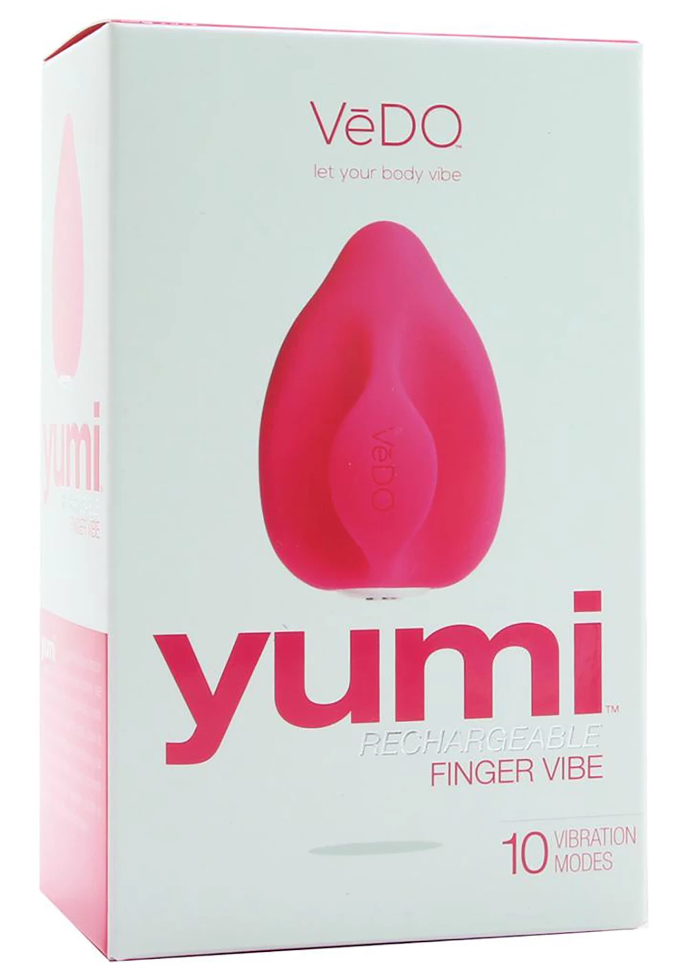 YUMI rechargeable finger vibe boasts 10 extremely powerful vibration modes. This uniquely designed vibrator lends itself to effortless control as it easily fits between your index and middle fingers. The silky smooth silicone and nub tip allows you to pinpoint all your pleasure zones as you tease and please your hot spots. Whisper quiet and completely submersible, this super cute and discrete vibrator is a must have for all.