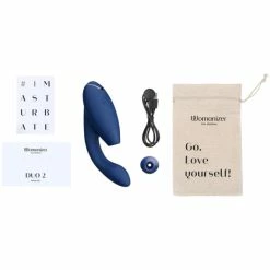 DUO 2 is a unique premium rabbit toy – a Pleasure Air clitoral stimulator and powerful G-Spot vibrator combined to create advanced, blended orgasms. Two separately controlled motors allow for versatility and custom control. Choose from 14 intensity levels and 10 vibration patterns. Pleasure Air Technology features the perfect balance between pulsating and massaging changes in air pressure without touching the clitoris. This ensures that the approximately 8,000 nerve endings are never overstimulated. Smart Silence ensures that Pleasure Air will only turn on when the stimulation head almost touches the skin. Until then DUO 2 remains silent in standby mode for a discreet experience and to conserve battery life. The Afterglow feature returns the toy to the lowest intensity at the press of a button, for a relaxing finish.