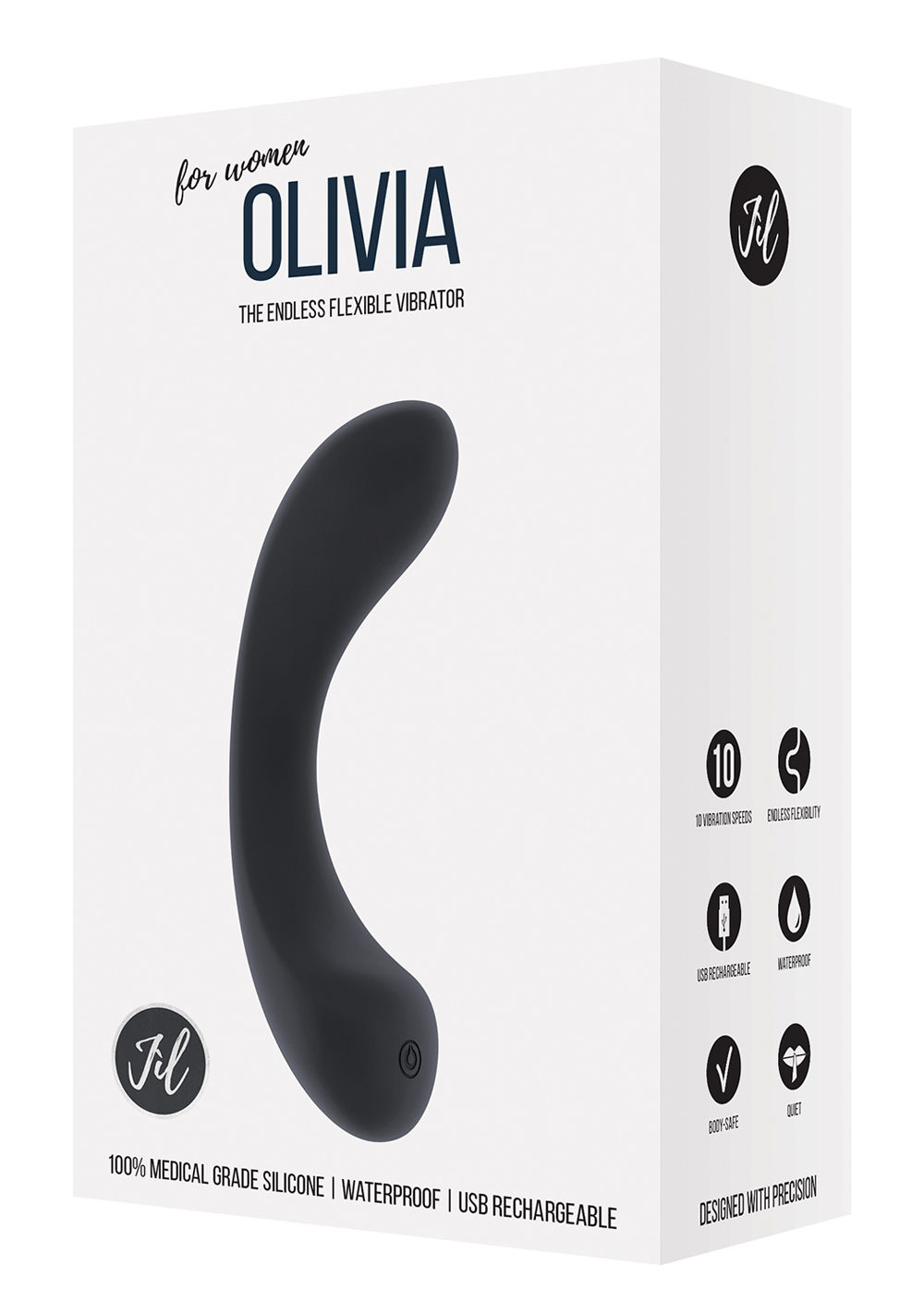 Jil brings sensual appearance unlike any other. Olivia is a very nimble vibrator that has been designed with precision, making it perfect to fulfill your deepest desires. We have used a new technology to develop this medical grade silicone toy, which gives Olivia softness and endless flexibility to adjust perfectly to the shape of your body. The super quiet, yet very powerful 10-speed motor provides satisfying stimulation that will work even in the deepest waters. When you and your partner are done simply connect it to the included USB Charger. One touch will be enough to fall in love with the warmth this toy radiates. Allow Jil into your life and let it overwhelm you with affection!