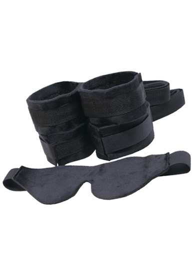 Includes four wrist/ankle straps with 44″ (111.7cm) ties and velcro closure, and one fabric blindfold