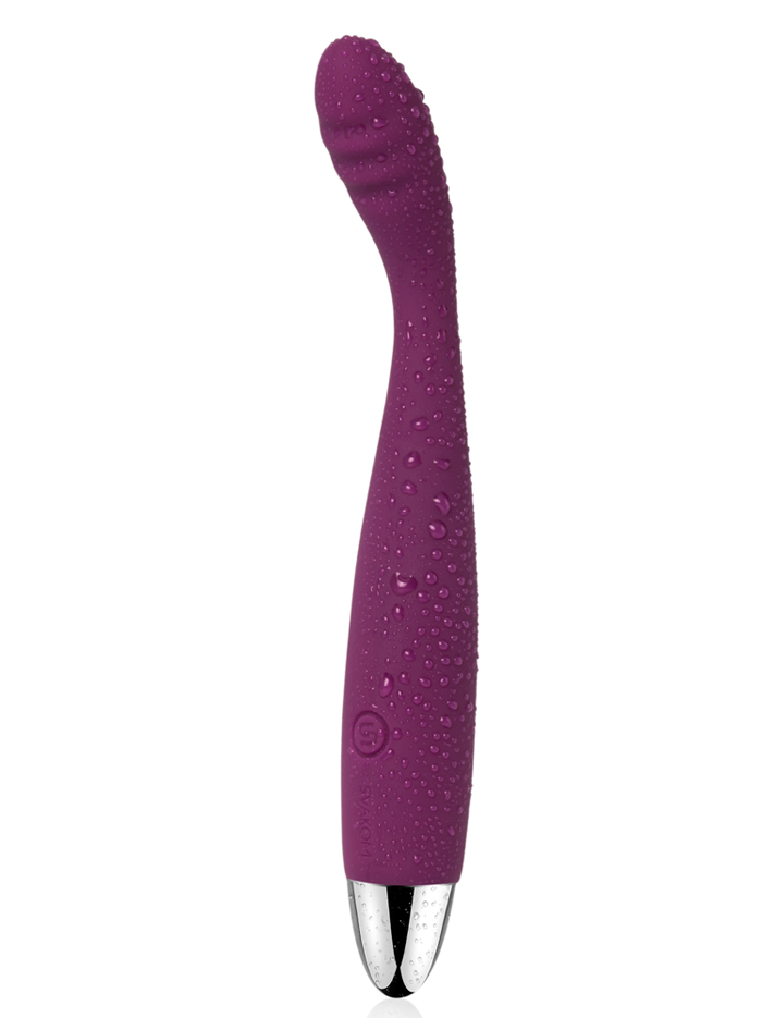 This long and slender vibrator has great reach, and its very flexible angled tip–it can bend 30 degrees!–can easily get to the g-spot, clitoris, or anywhere else on the body you want to stimulate. Cici’s ergonomic contoured shape is easy to maneuver both during solo or partnered use. One-button controls power six vibration modes, with the most focused vibration located towards the flexible tip. Waterproof and USB rechargeable; a two-hour charge yields four hours of use.
